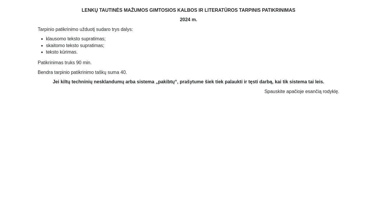 2024 m. lenkų tautinės mažumos gimtosios kalbos ir literatūros tarpinis patikrinimas